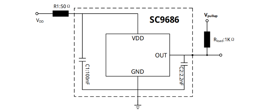 The SC9686 is an integrated active magnetic sensor based on Hall technology, designed for transmission speed sensor applications. Featuring a three-wire voltage interface and communicating via PWM protocol, it provides information on gear rotation speed and direction. Zero-speed detection is supported. With outstanding sensitivity and accuracy, along with a wide operating temperature range, this sensor is ideally suited for demanding automotive requirements. The SC9686 utilizes a PCB-less package with an integrated 2.2nF capacitor, delivering outstanding electromagnetic interference immunity.