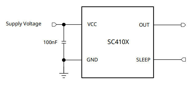 SC410X is a low-power linear Hall sensor IC that responds proportionally to magnetic flux density. The quiescent output voltage is 50%*VCC. The device can enter an ultra-low-power shutdown mode by adding a user-selectable sleep mode. This makes these devices ideal for battery-powered applications such as robot vacuums, wireless power tools, and wireless game controllers and peripherals.