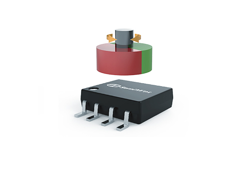 SC6022X是一款非接触式高速、高精度磁编码器芯片,芯片中心内置了霍尔感应点矩阵,通过感应上方的一对极磁铁产生正弦和余弦位置信号。芯片内部的模数转换电路对放大后的正弦和余弦信号进行采样,DSP 电路进行角度运算,最后输出各种位置信号。SC6022x的分辨率达到12个比特,每个圆周可以产生 4096 个角度增量信号,零位信号的位置可通过 SPI接口编程,最高支持20Krpm。