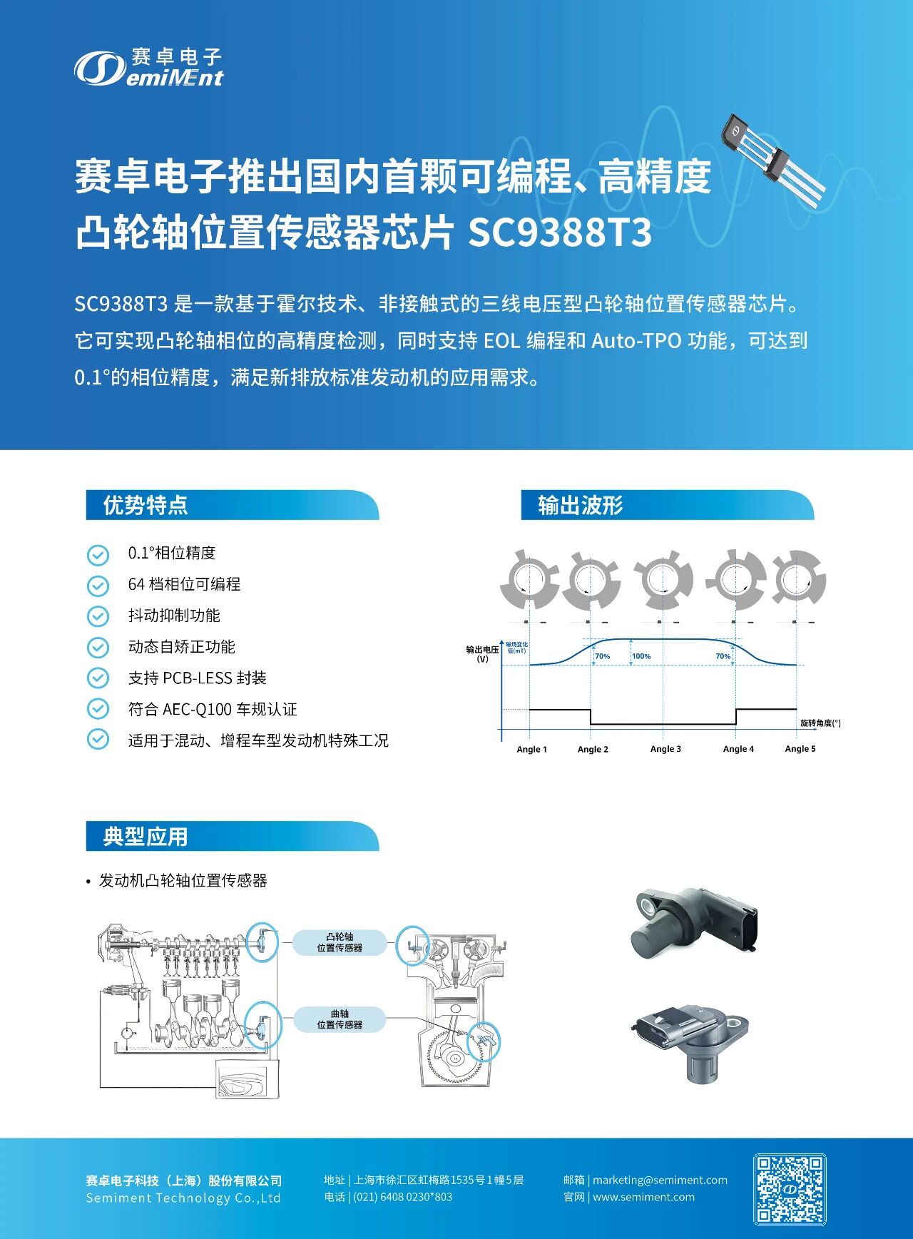赛卓电子推出国内首颗可编程、高精度凸轮轴位置传感器芯片 SC9388T3