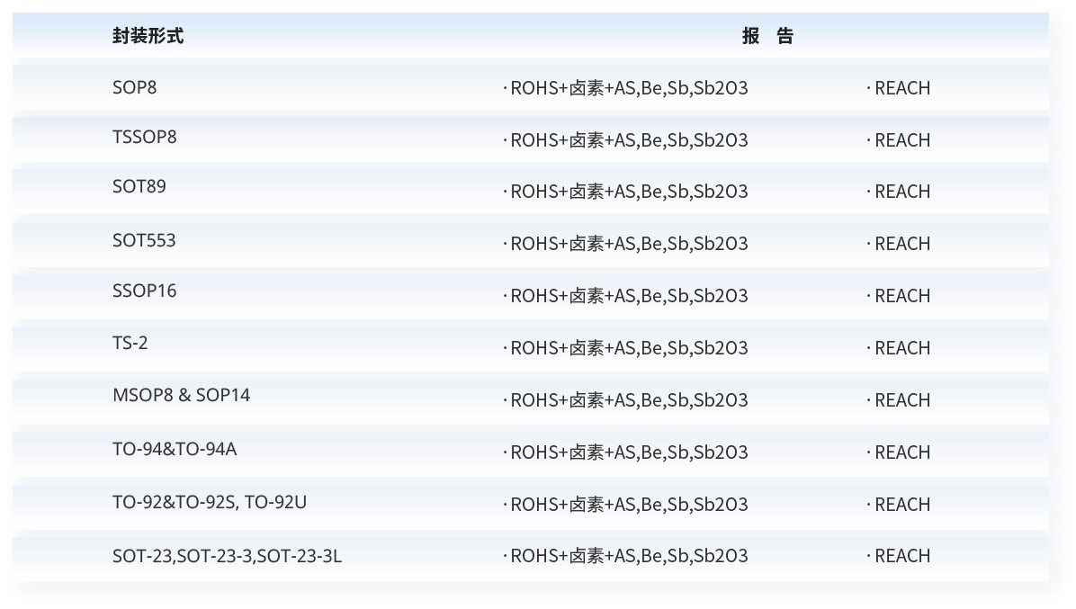 | TSSOP8 | ·ROHS+卤素+AS,Be,Sb,Sb2O3·REACH |